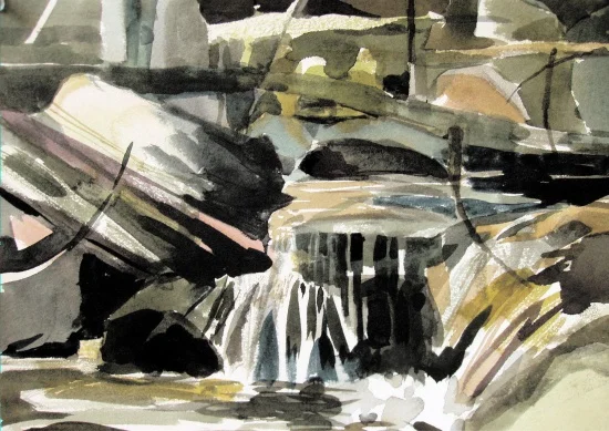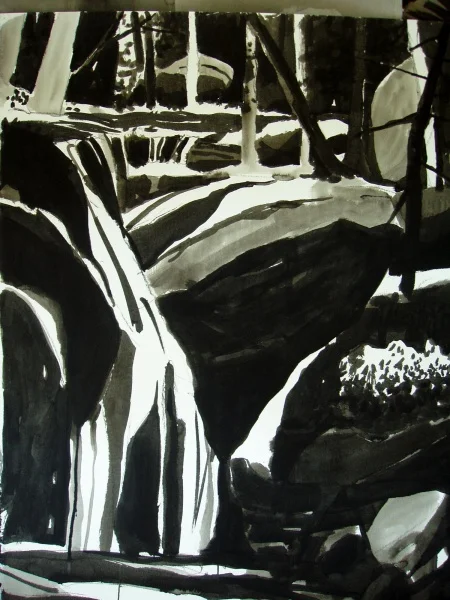 Paintings, prints and works on paper inspired by the waterfalls and landscape of Platte Clove in the Catskills where Kate had an Artist-in-Residence.